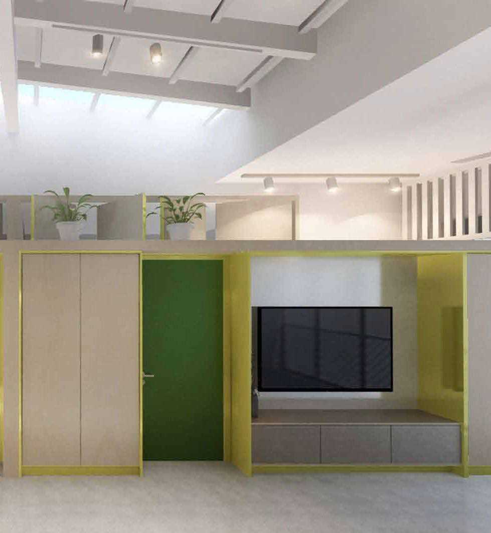 Highlight: For city dwellers living in small apartments we thought that it would be nice to create a fresh and healthy space with this design concept that promotes smart usage of working and living spaces. One of the tricks is to utilize fresh colours and embedding multi-purpose furniture that can double up as storage spaces.