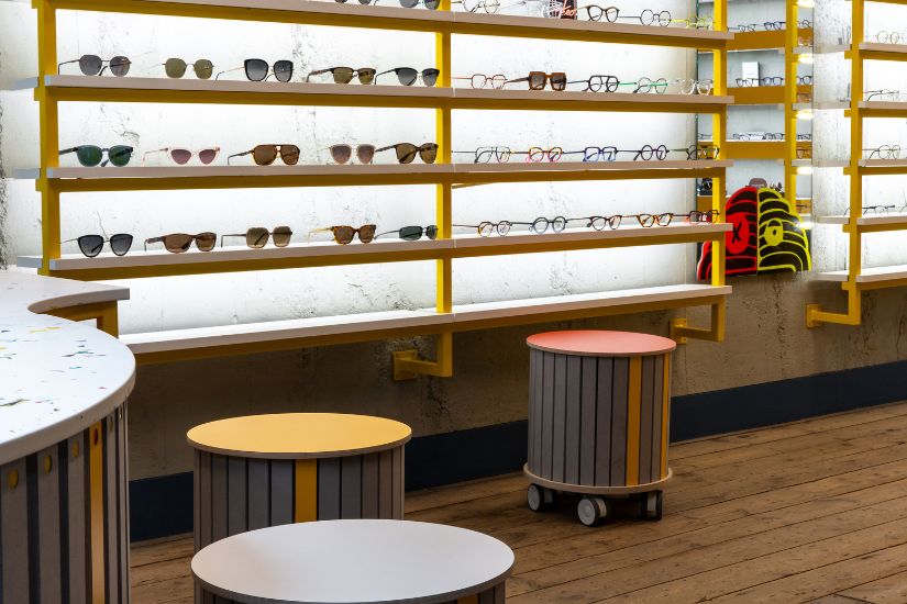 Skreddersydde bord med Formica® Laminate i klassisk Calacatta Marble og Ferro Grafite Satin Marble er fullendt med en gull-aluminiumskant, noe som skaper elegante, stilige og holdbare møbeldesign. Det nedtonede fargevalget vil fremheve de levende fargene som brukes andre steder i prosjektet.