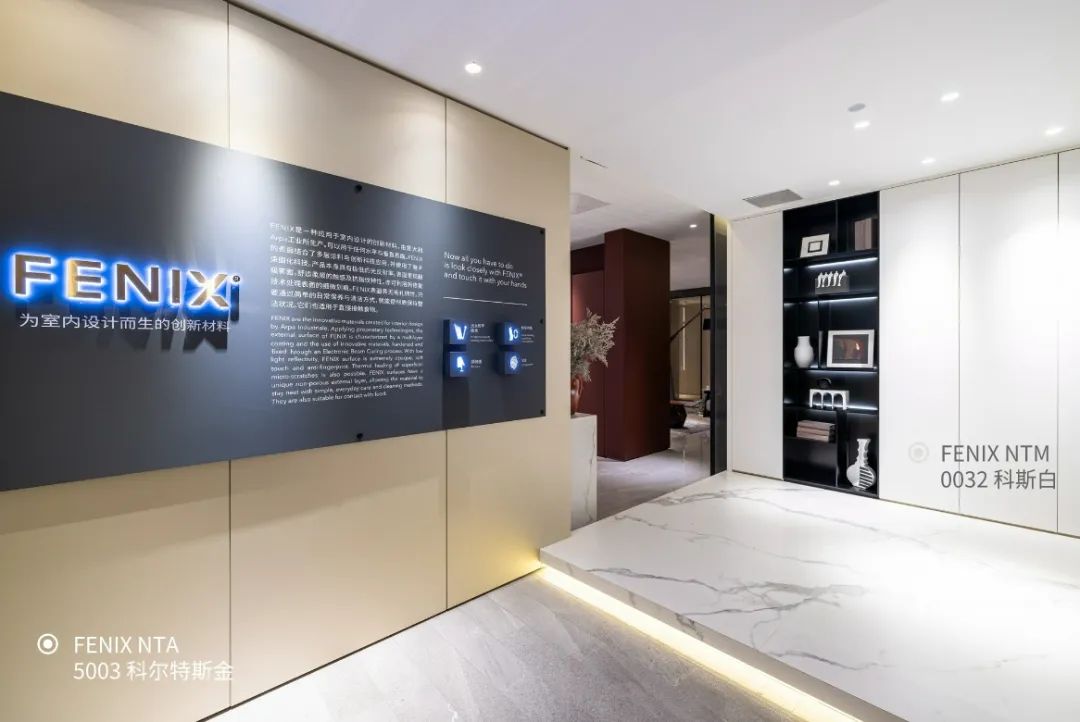 多功能洽谈区运用FENIX伦敦灰打造了博古架和4米长桌,无论工作学习还是分享欢聚,都能轻松承载。FENIX防指纹的特性亦带来全新的使用体验。