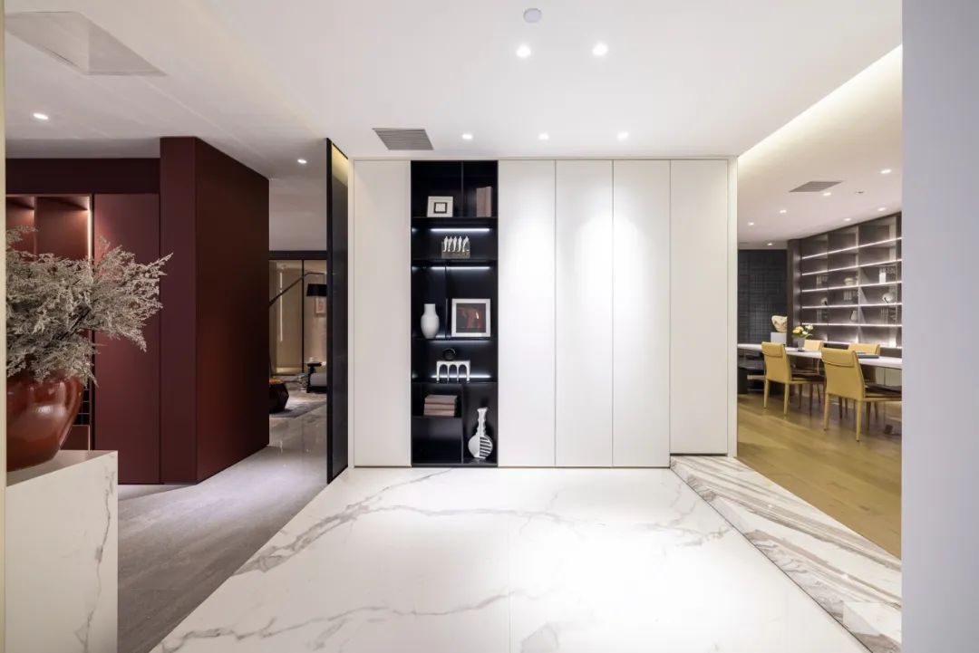 门厅区域以极简优雅的FENIX勾勒了一个引人入胜的“金色剧场”,带来独树一帜的生活美学体验。