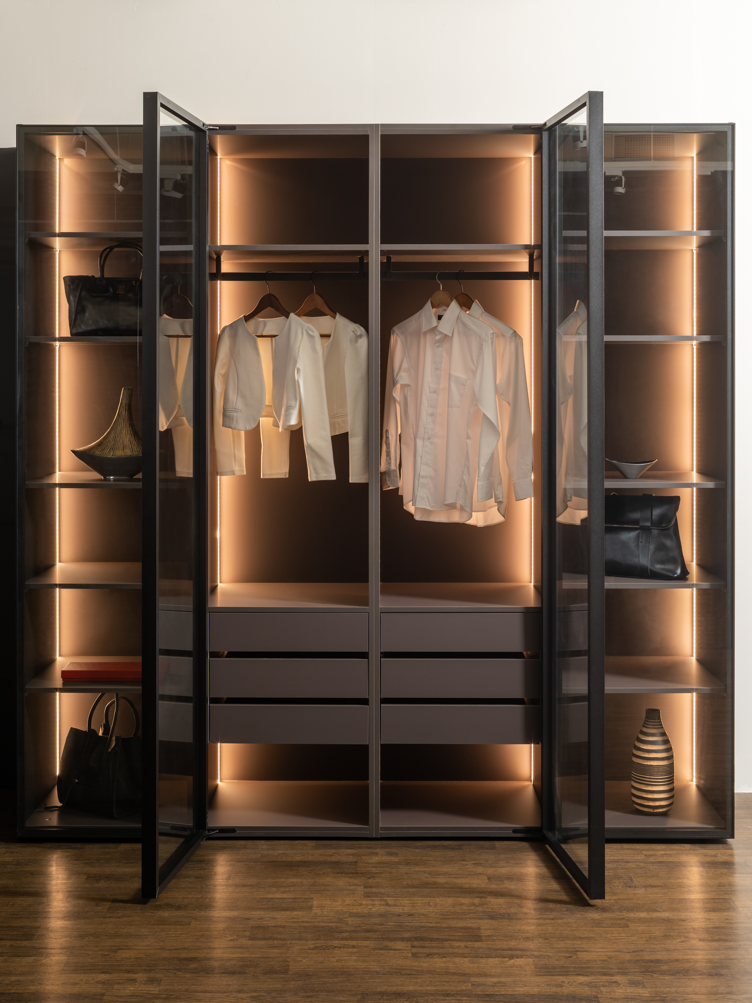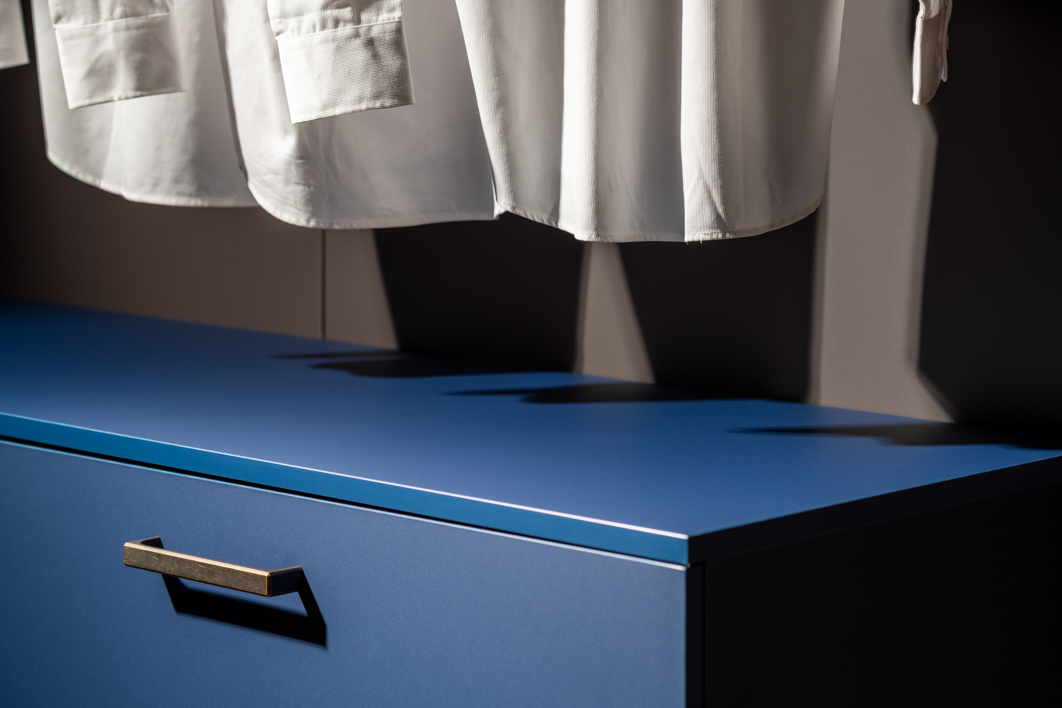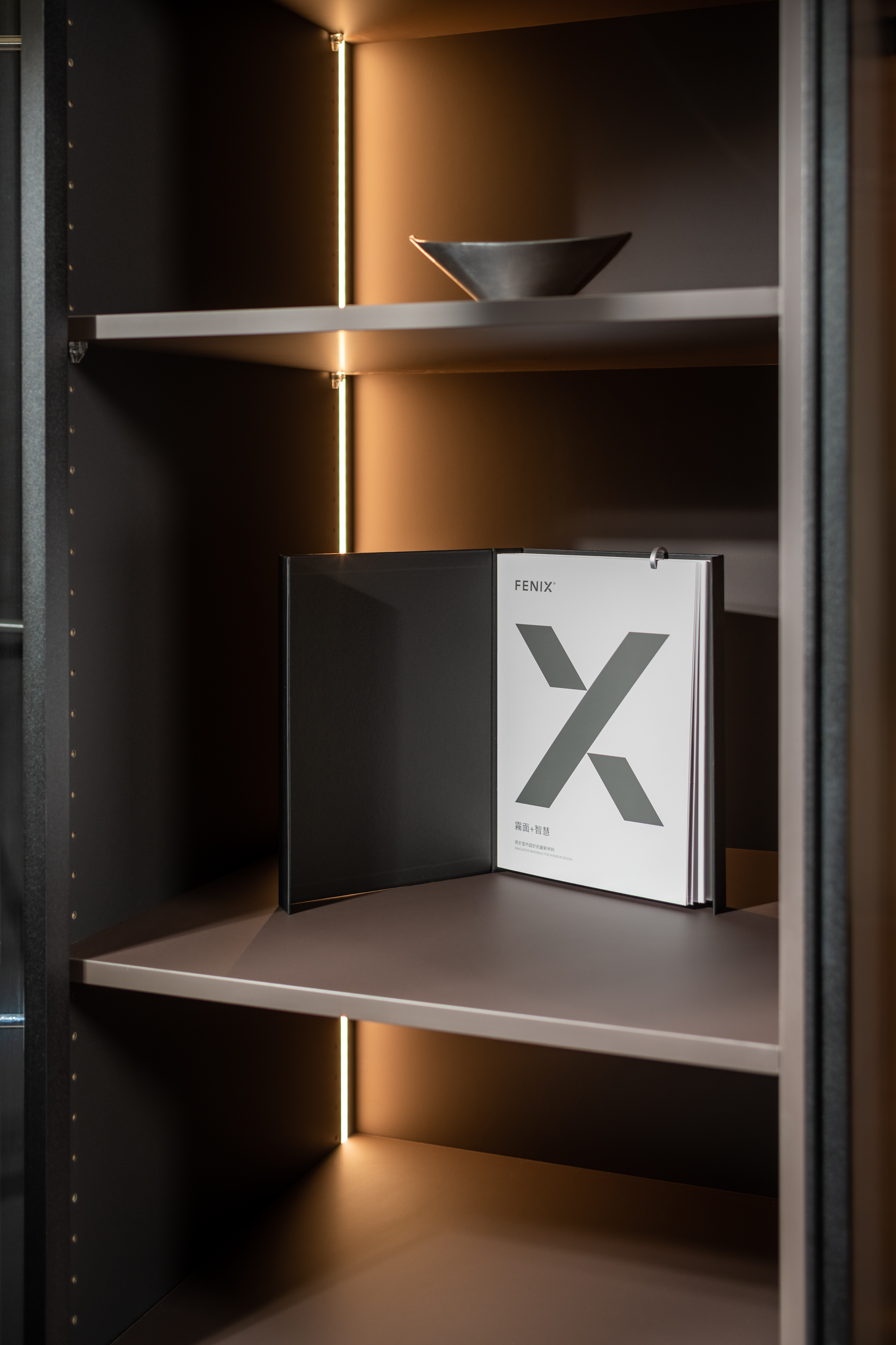 FENIX® 的極致霧面,完美將兩個空間融合,低光線反射的特性,使衣櫃間的打光溫潤明亮,展現不過於耀眼的絕佳質感。