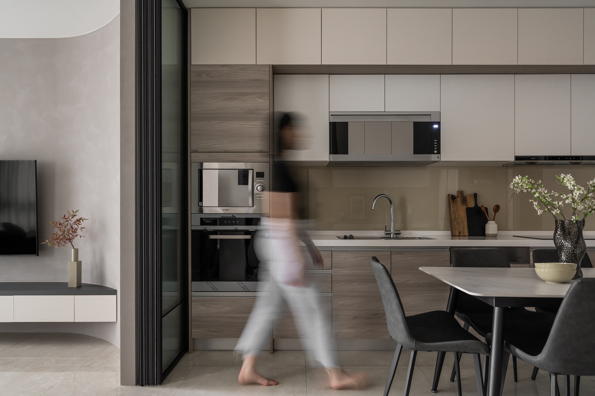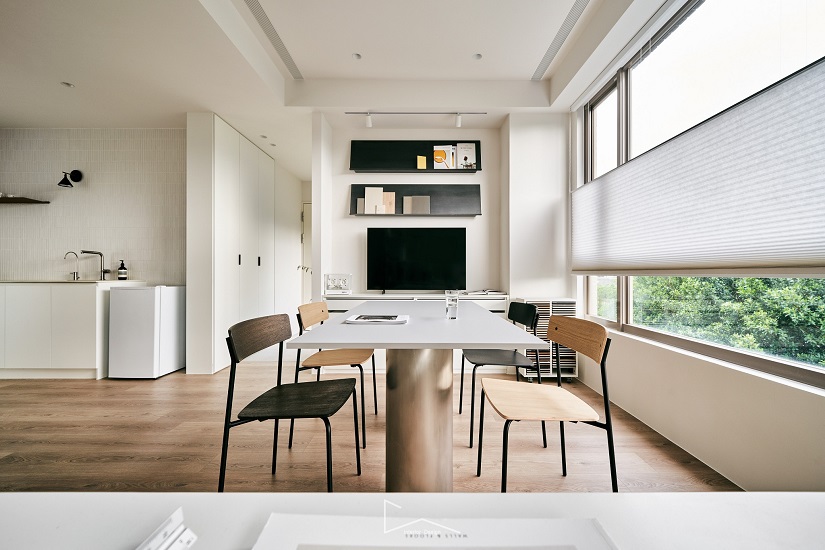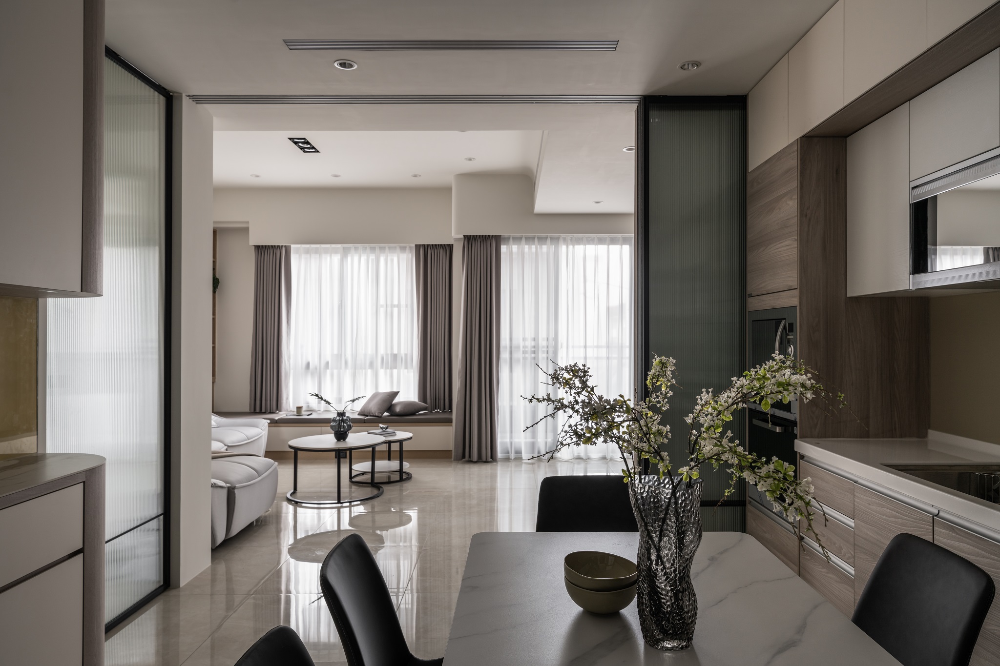 如流水般的玻璃屏風,使隔間更顯通透在窗外流光的照耀下,看見心中家的理想模樣。