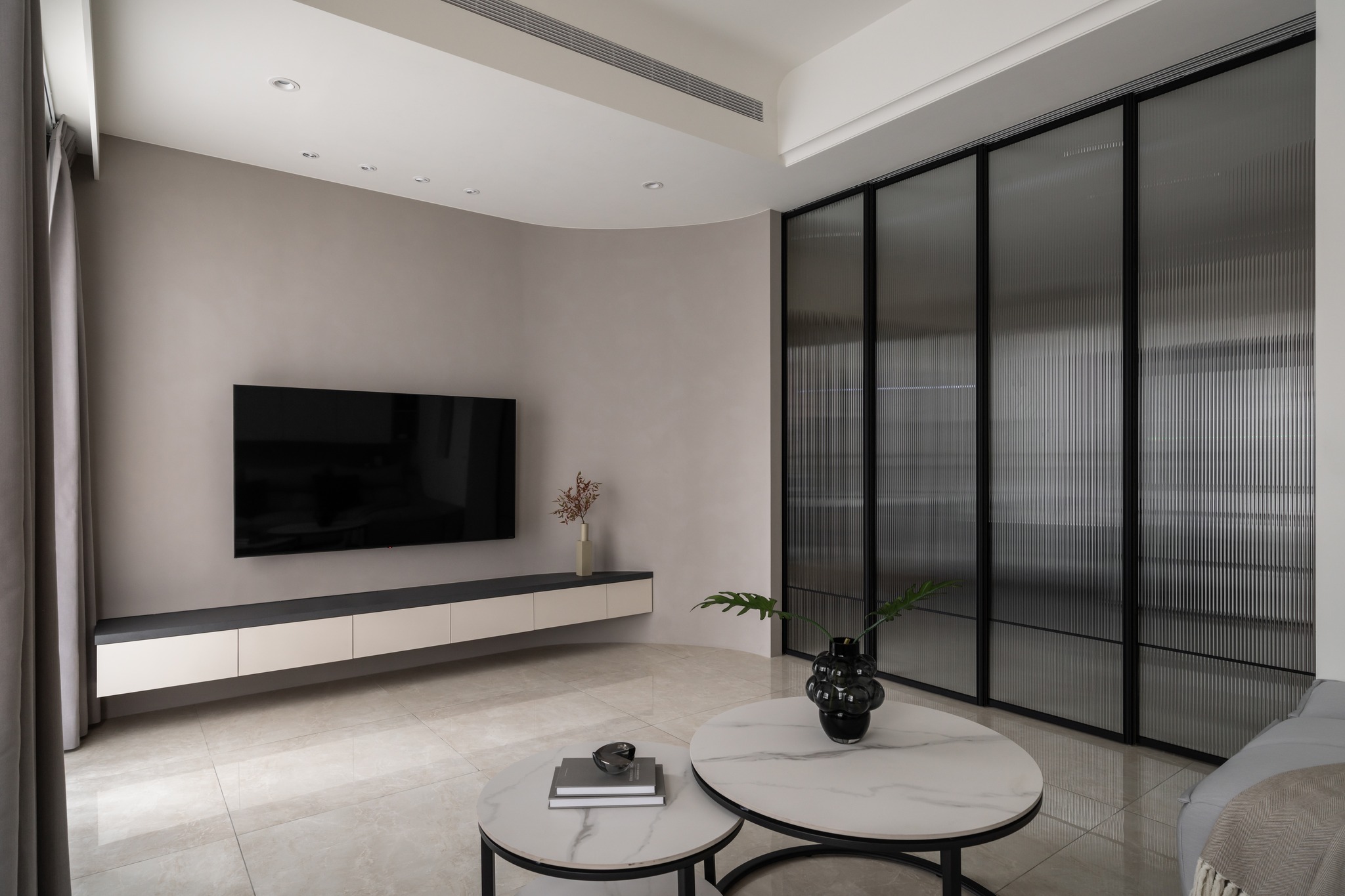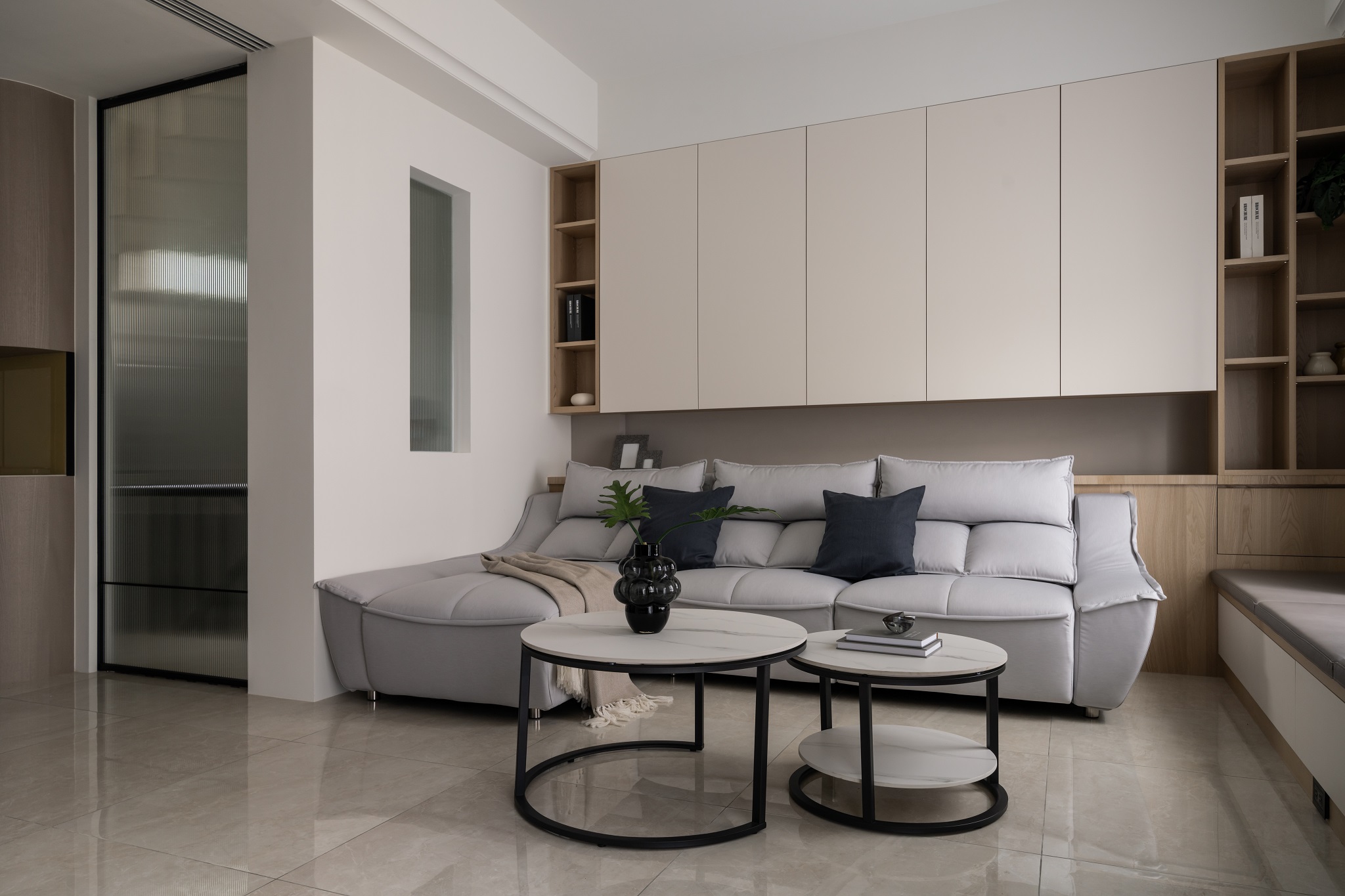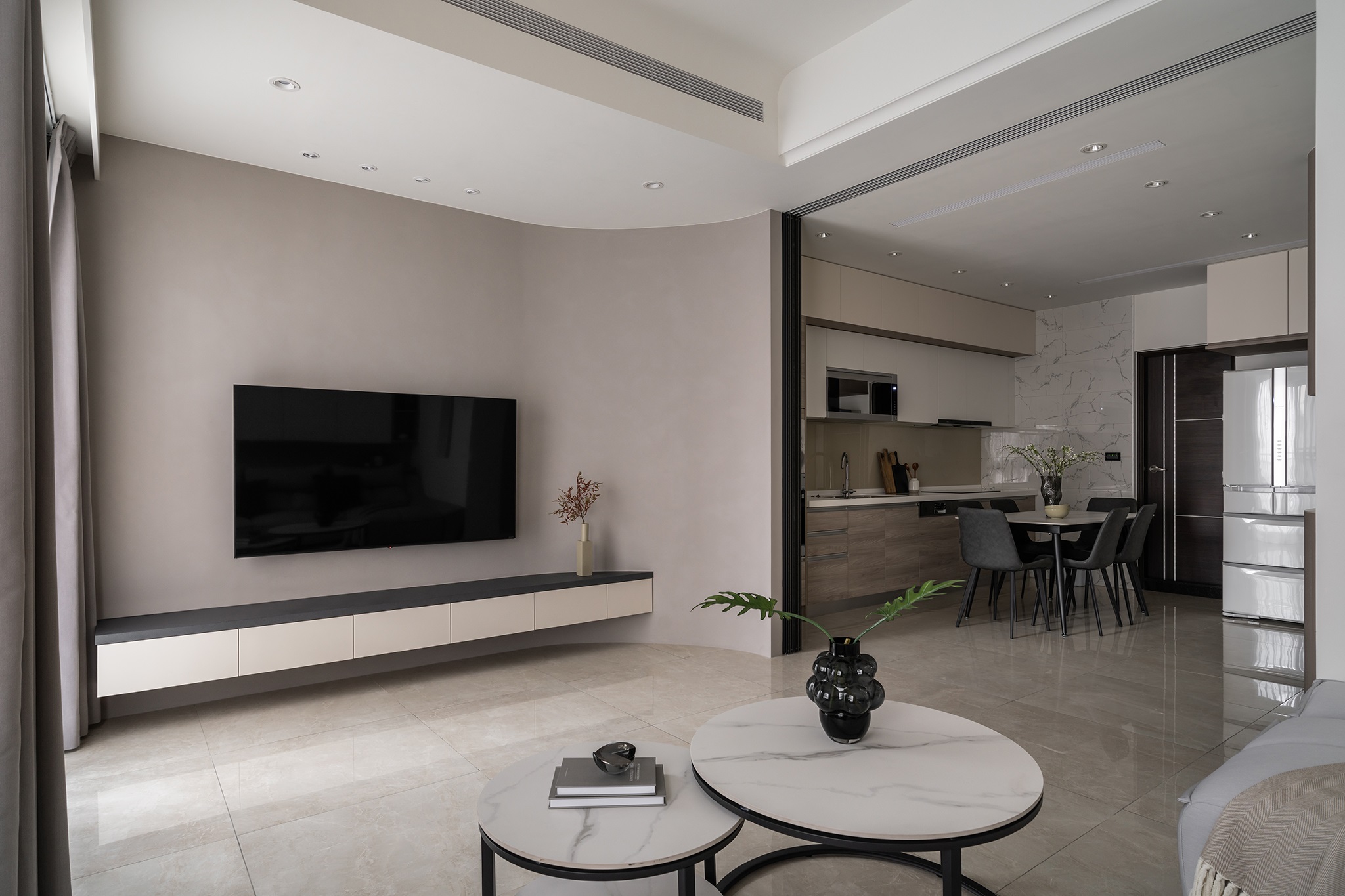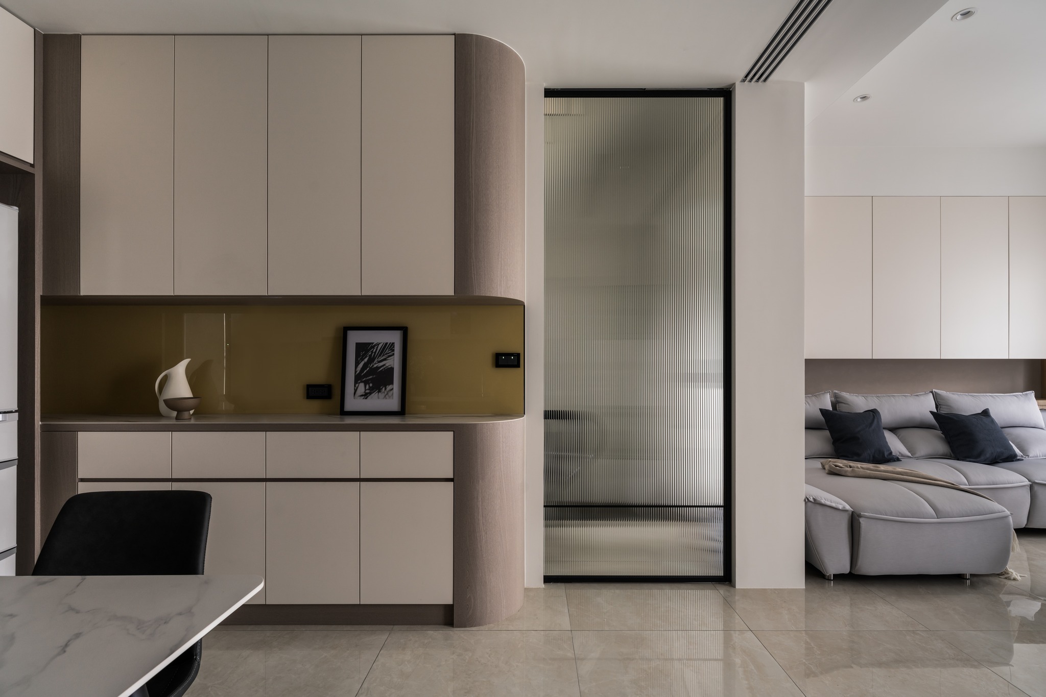 溫婉的奶茶色系,與曲弧線調搭配讓空間擁有溫柔典雅的氣質。