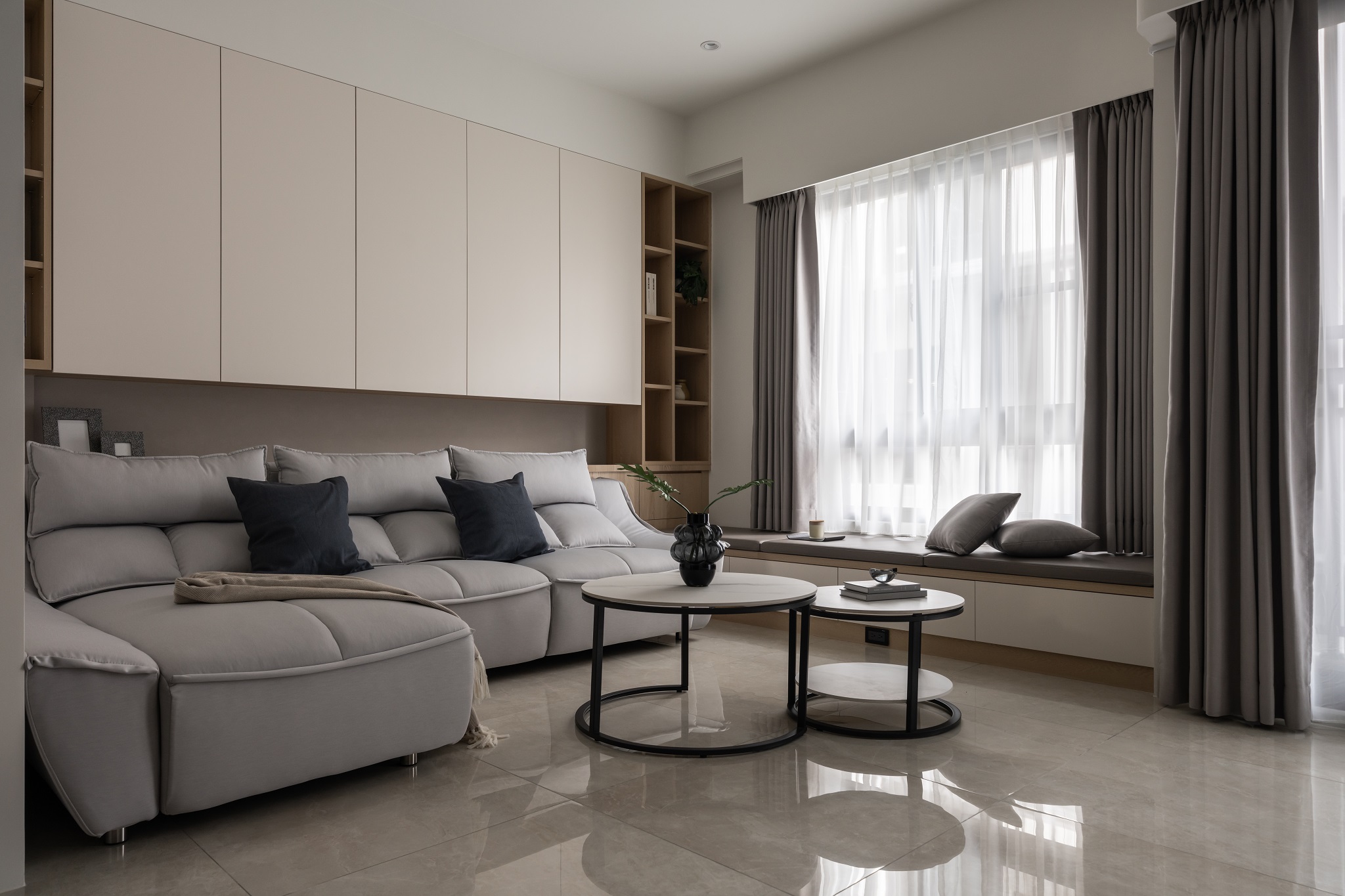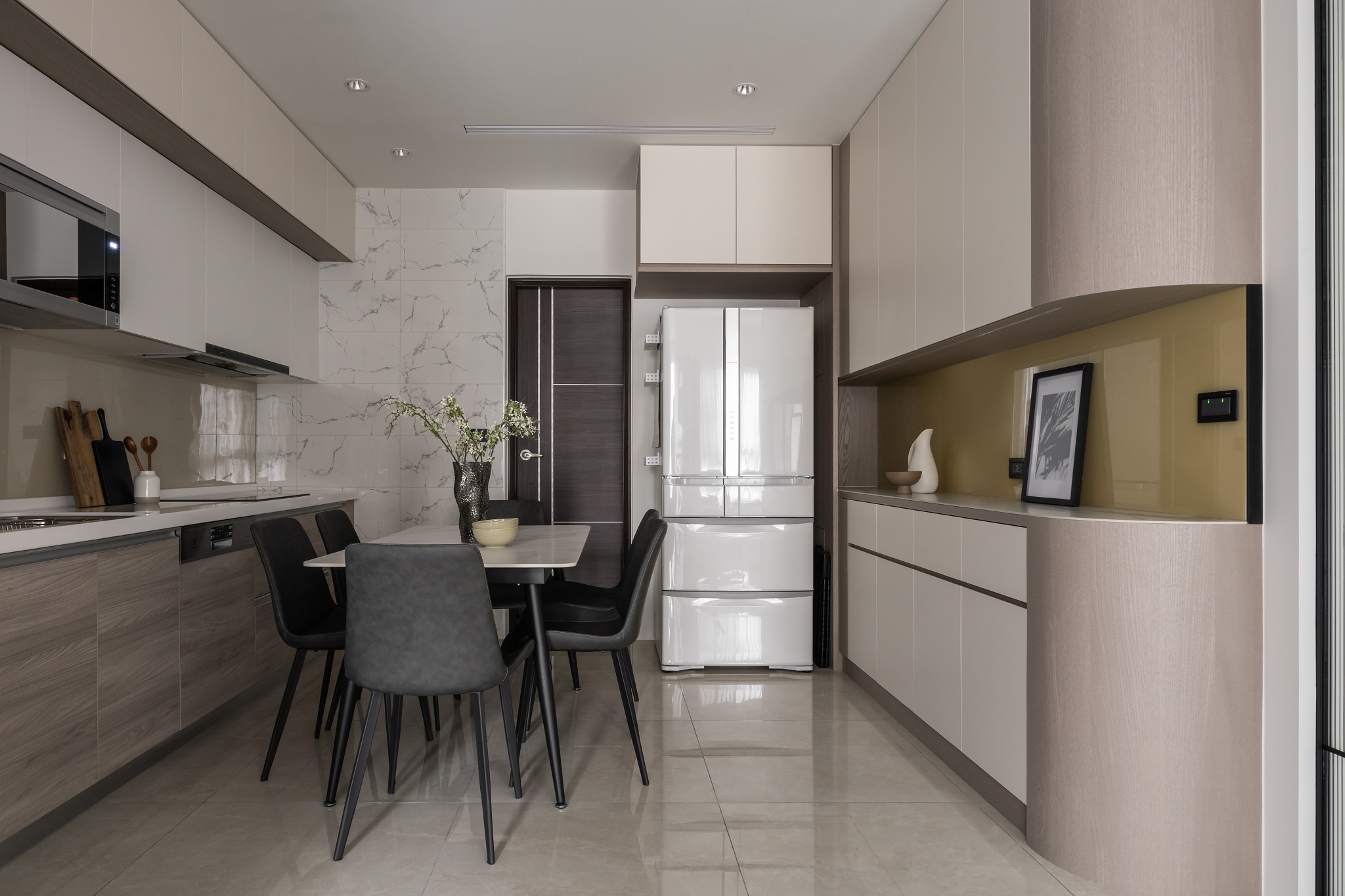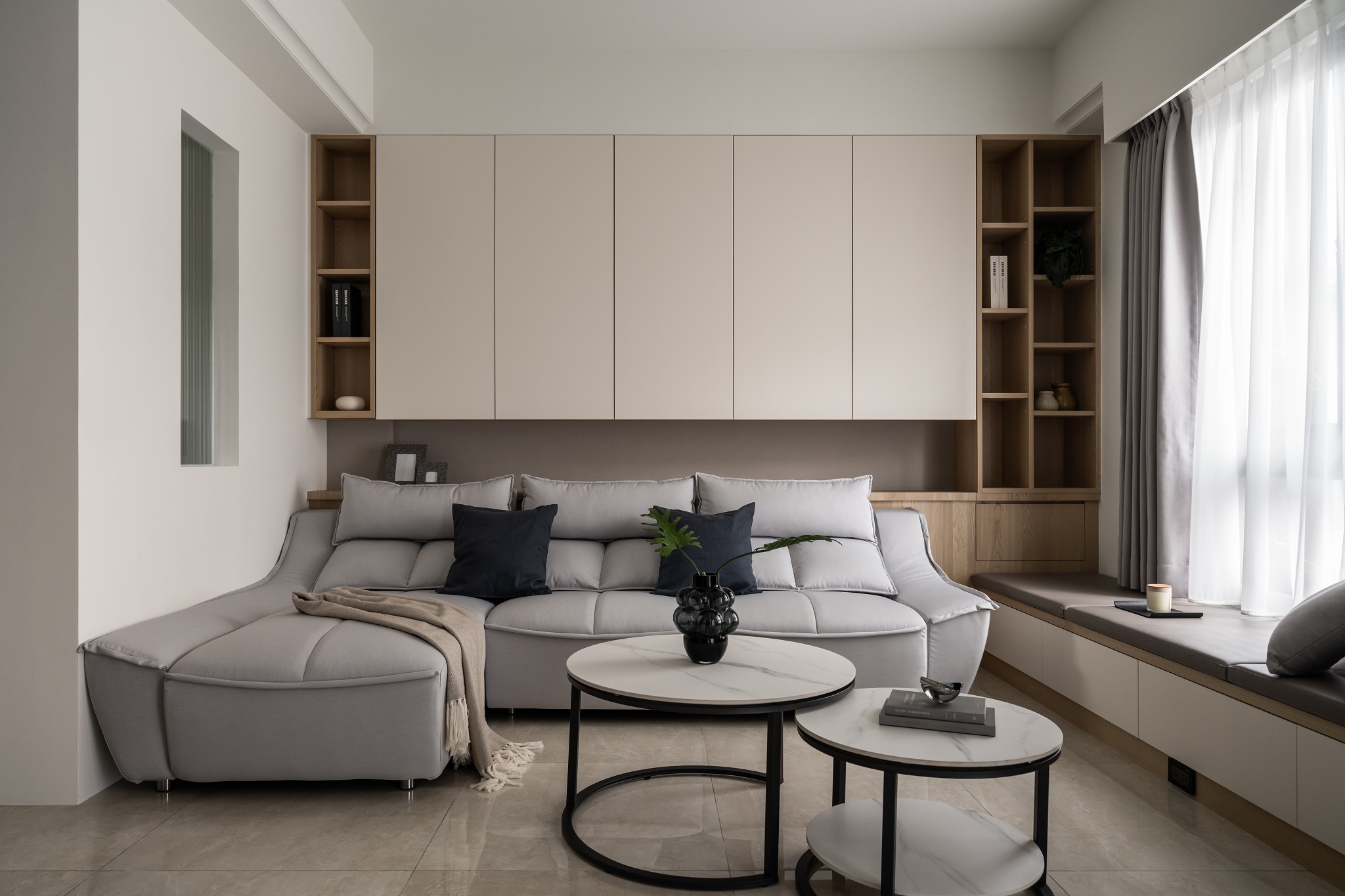 溫婉的奶茶色系,與曲弧線調搭配讓空間擁有溫柔典雅的氣質。