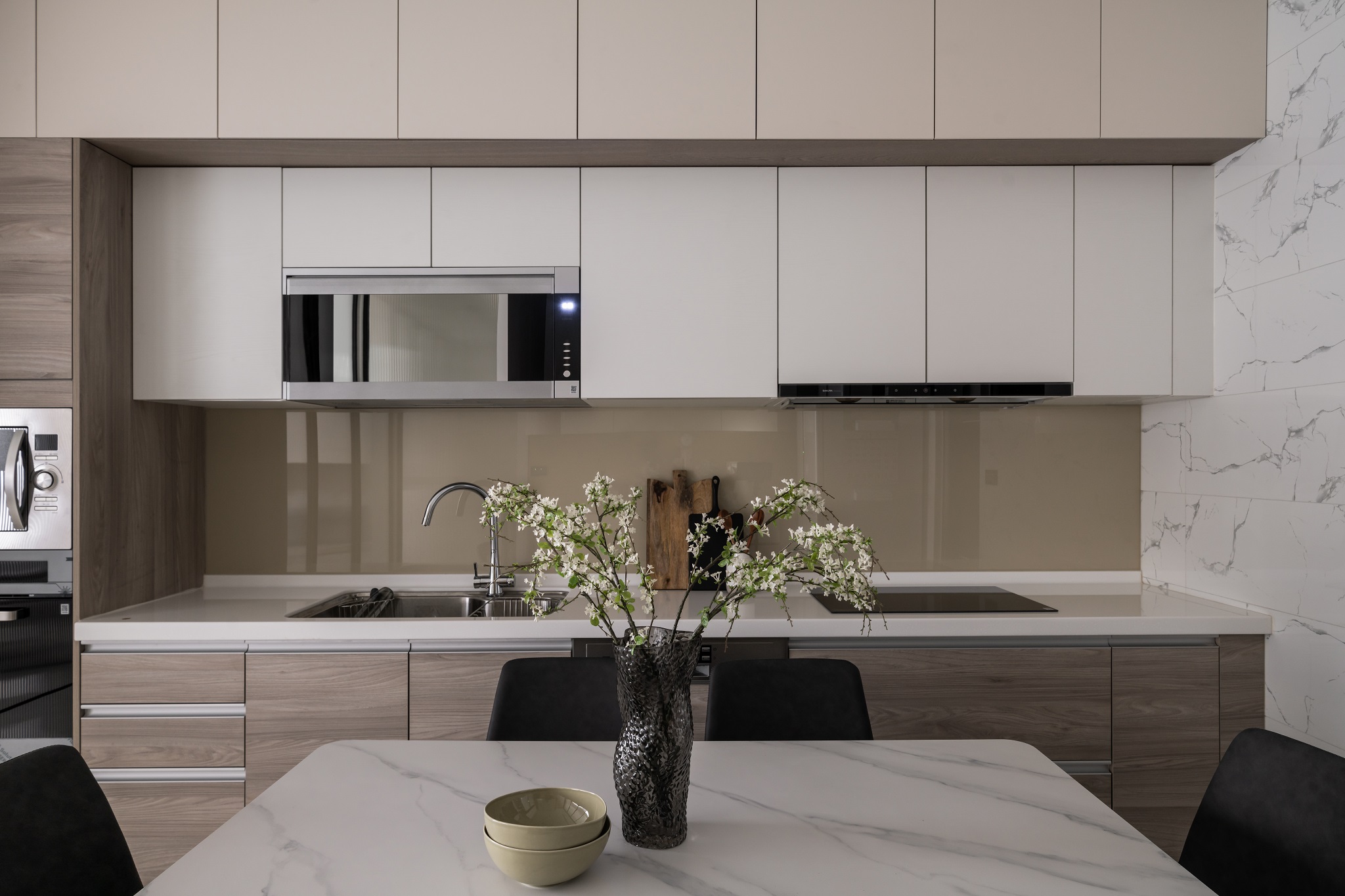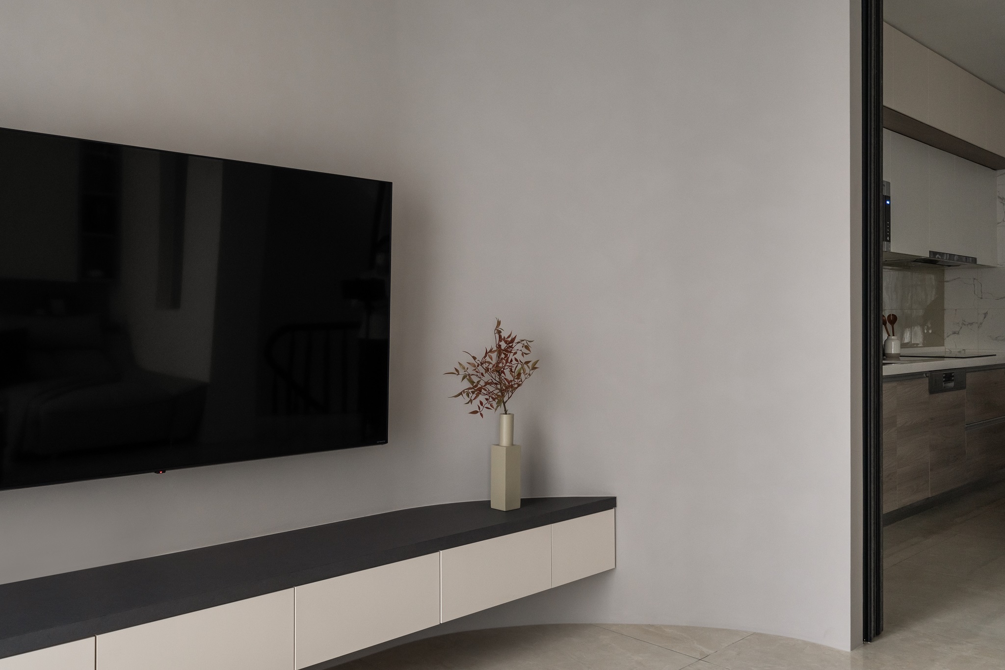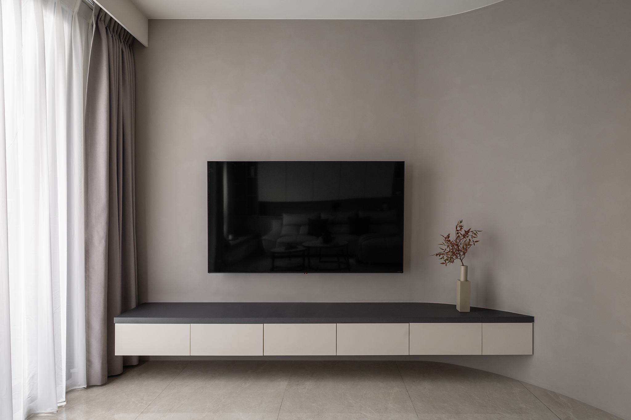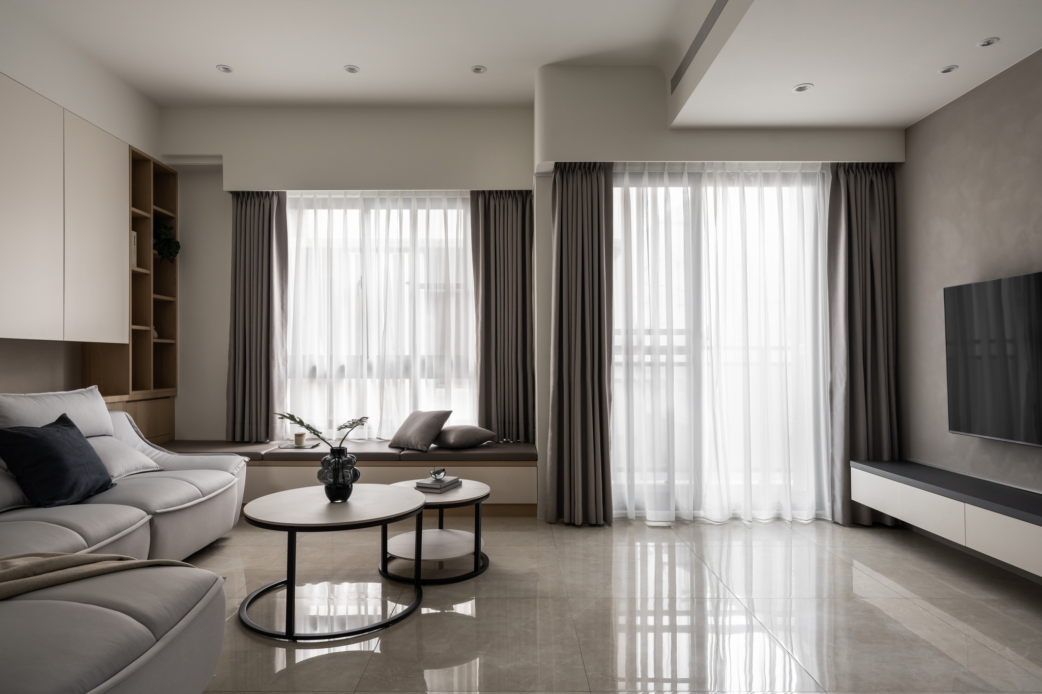 溫婉的奶茶色系,與曲弧線調搭配讓空間擁有溫柔典雅的氣質。