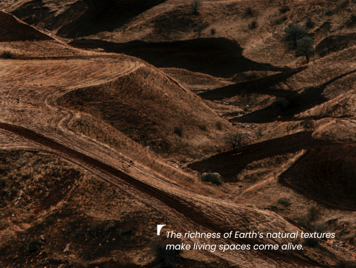 從大自然中擷取靈感,三款全新的深邃紋理:岩紋-Pietra、原生木紋-Organic Wood 和 寬直紋-Kleber Line ,突破了傳統的設計界線,迴盪出與靈魂共鳴的情感聯繫。